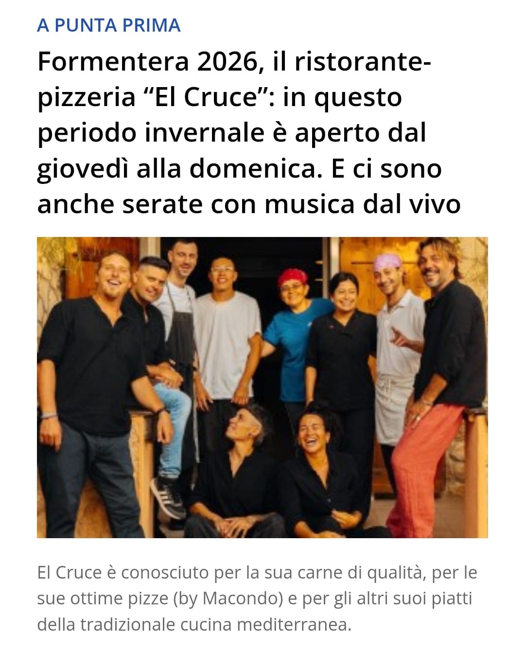Formentera 2026: clicca qui per leggere l’articolo sul ristorante-pizzeria “El Cruce”.