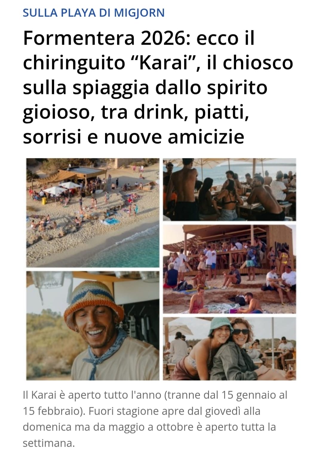 Formentera 2026: clicca qui per leggere l’articolo sul chiringuito “Karai”.