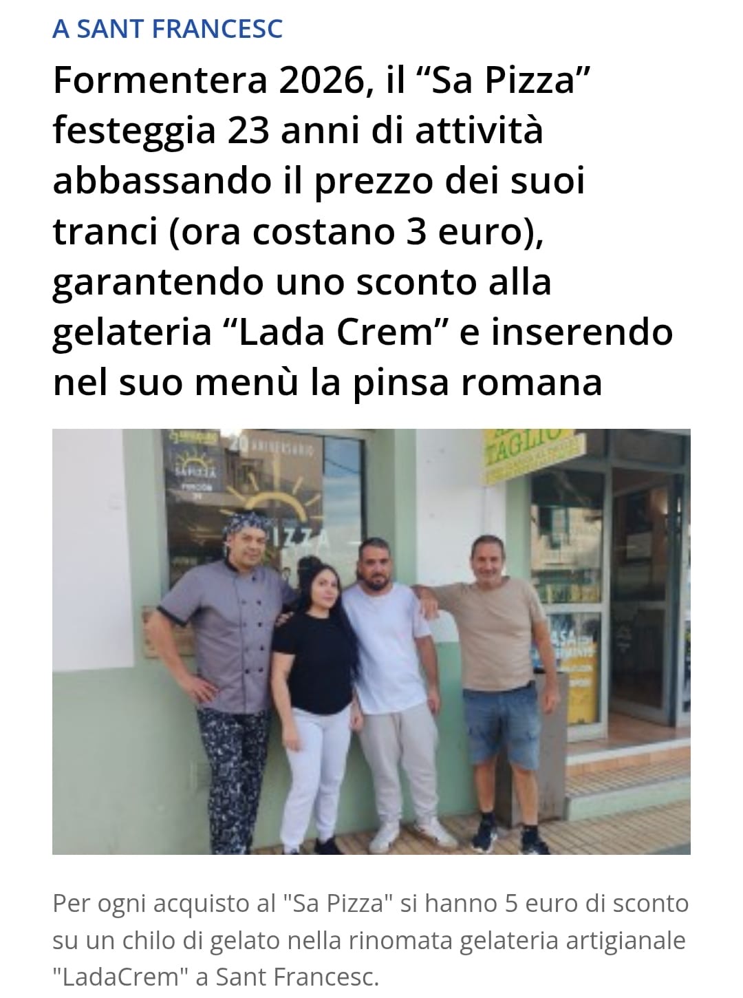 Formentera 2026: clicca qui per leggere l’articolo sulla pizzeria da asporto “Sa Pizza”.