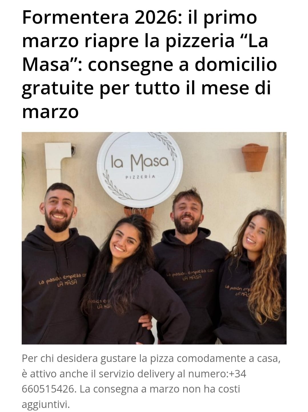 Formentera 2026: clicca qui per leggere l’articolo sulla pizzeria “La Masa”.