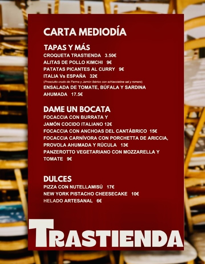 Il vero cuore del cambiamento del “Trastienda” risiede poi nel suo format culinario. Il ristorante propone infatti adesso un mix perfetto tra cucina italiana e tradizione spagnola, riuscendo a far convivere due culture gastronomiche con un equilibrio sorprendente. Ottime le loro tapas, le loro crocchette, il loro carpaccio di gamberi e una nota di merito al loro polpo, cucinato a regola d’arte, tenero e saporito. E la grande novità di quest’anno è di sicuro l’ingresso della pizza e delle focacce nel menù. E non si tratta di una pizza qualunque. l’impasto è leggero, gli ingredienti di prima scelta e la tecnica impeccabile: il pizzaiolo (italiano) è davvero molto bravo, considerato tra i migliori sull’isola.