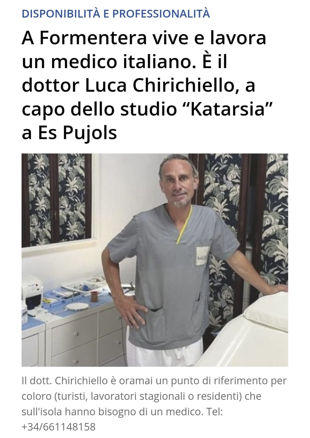 Formentera 2026: clicca qui per leggere l’articolo sul medico italiano che ha un suo studio privato all’isla.