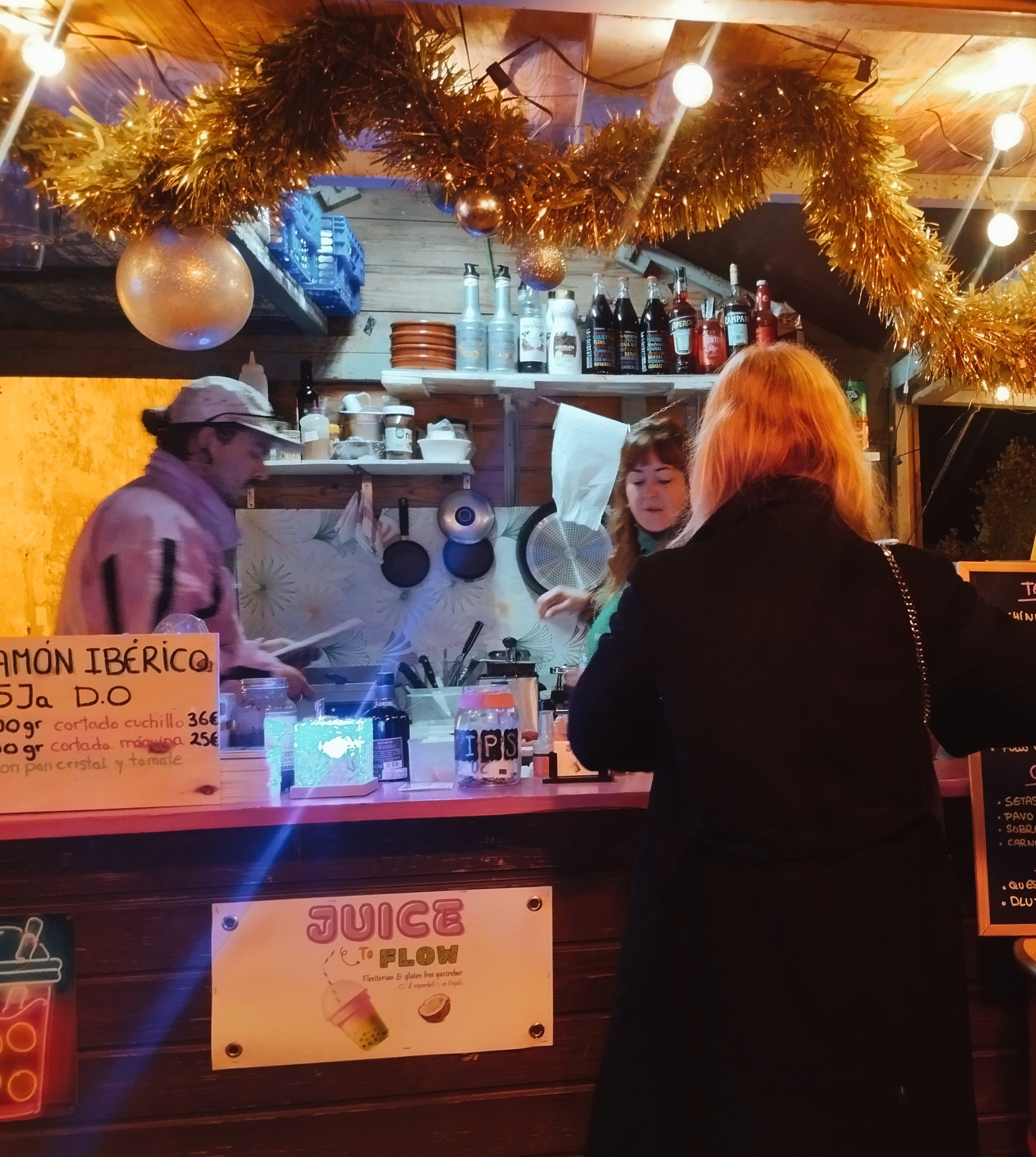 Il consiglio, quindi, è quello di fare una sosta alla casetta “Juice to Flow”. È esattamente la prima accanto alla chiesa. Si affaccia, insomma, sulla piazza. Quel che è certo è che la passione messa da Mariona nei suoi piatti eleva l’esperienza da semplice postazione del mercatino natalizio a un vero e proprio evento enogastronomico.