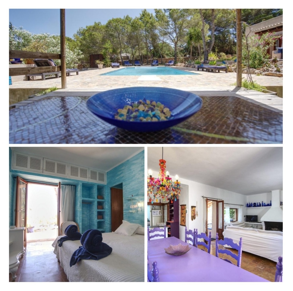 Con un inconfondibile stile dell’isola, questa villa offre una splendida vista sul mare e ampi spazi aperti nel verde circostante. Qui di sicuro si possono trascorrere delle giornate in pieno relax, prendendo il sole a bordo piscina, leggendo un libro sul divano all’ombra del gazebo e gustandosi un aperitivo al tramonto nella zona relax sul tetto. Il giardino è dotato di un barbecue e di un grande tavolo da patio, perfetti per una piacevole cena all’aperto. La villa dispone in tutto di quattro camere da letto, quattro bagni completi, aria condizionata, lavatrice, parcheggio privato, cucina completamente attrezzata e un ampio giardino. Situata nella tranquilla zona di Porto Sale, “Villa Sol y Brisa” si trova a metà strada tra il centro di San Francesc e il porto de La Savina. Il Parco Naturale di Ses Salines e le splendide spiagge di Illetas sono nelle vicinanze.