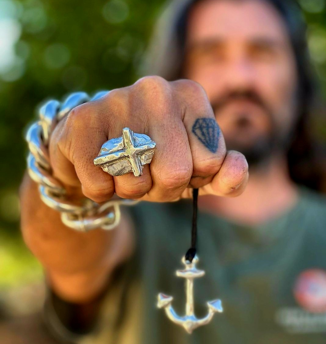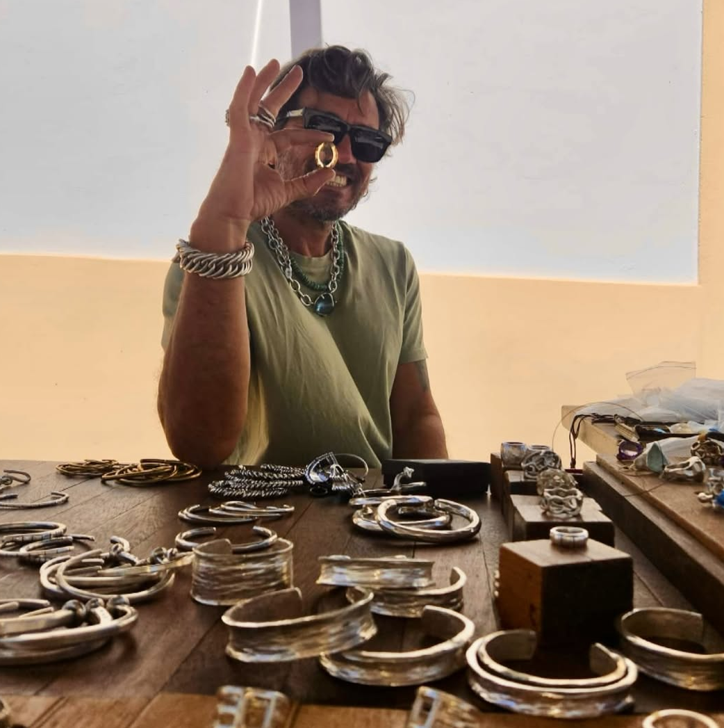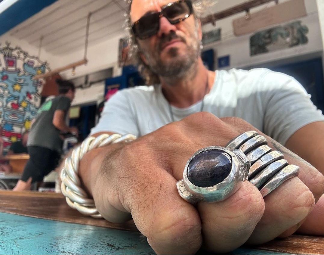 FORMENTERA (16 novembre 2025) – Il sipario sulla stagione turistica 2025 di Formentera si è oramai chiuso. E per il noto artigiano dell’argento Tito Solari è il momento dell’immersione totale nel suo laboratorio per dare vita a nuove ispirazioni, dando forma a nuovi anelli, collane e bracciali che catturano l’essenza magica e un po’ ribelle dell’isola. Nel tintinnio degli strumenti e nel bagliore dell’argento, Tito lavora con passione, affinando ogni dettaglio, plasmando ogni curva. Pezzi unici, finemente lavorati a mano, ricercati, a volte impreziositi da pietre naturali (zaffiri, topazi azzurri ametiste verdi, ecc ecc) provenienti alcuni dalle zone più isolate e remote del mondo. Il tutto per creare il perfetto equilibrio tra materia e natura. Le sue due postazioni estive (una in piazza a Sant Francesc, accanto al “Big Store”, e l’altra al mercato hippie a La Mola) torneranno la prossima primavera, ma per gli amanti delle sue creazioni, dal design unico, questo periodo di “bassa stagione” non significa affatto doversi privare della sua arte. È possibile, infatti, acquistare on line i suoi gioielli e contattarlo direttamente (clicca qui per aprire il suo sito internet, con tutti i suoi contatti). Un’opportunità perfetta per regalare o regalarsi (magari per Natale) un pezzo dell’anima di Formentera, forgiato con maestria e passione.