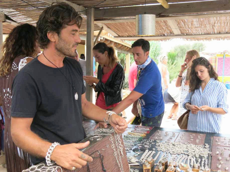 E quel che è certo è che Tito non ha bisogno di troppe presentazioni. È il designer dell’argento, un artigiano la cui maestria sta incantando residenti e turisti da oramai 20 anni: ogni incisione e ogni forma dei suoi gioielli sono un omaggio allo spirito libero e alla bellezza incontaminata dell’isola. Con lui c’è la compagna Stefania, ispiratrice di molte delle sue creazioni, sua fedele consigliera e presenza fissa – con la sua bellezza e la sua cordialità – nella loro postazione a La Mola in estate.
